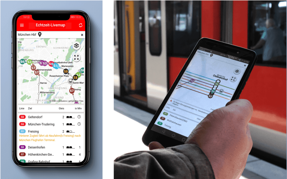Der Client ist in der offiziellen Auskunfts-App der S-Bahn („München Navigator“) eingebunden und unter s-bahn-muenchen-live verfügbar.